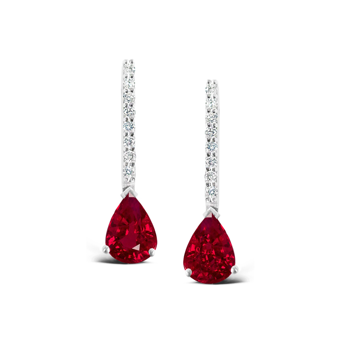 This design features rubies with a total weight of 1.63 carats. The side diamonds have a total weight of .20 carats.